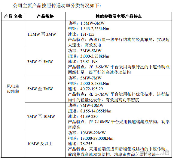 下游聚焦风力发电领域,核心产品是风电主齿轮箱,2024 年该业务收入 36.78 亿元,占总营收 98.99%,其他业务为材料及废料销售。风电主齿轮箱作为风电机组核心部件,功能是将风轮低速旋转转换为发电机所需高速旋转并传递能量,性能直接影响机组效率与可靠性。同时,公司提供风电齿轮箱运维服务,包括技术培训、现场诊断、维护与改造升级等。