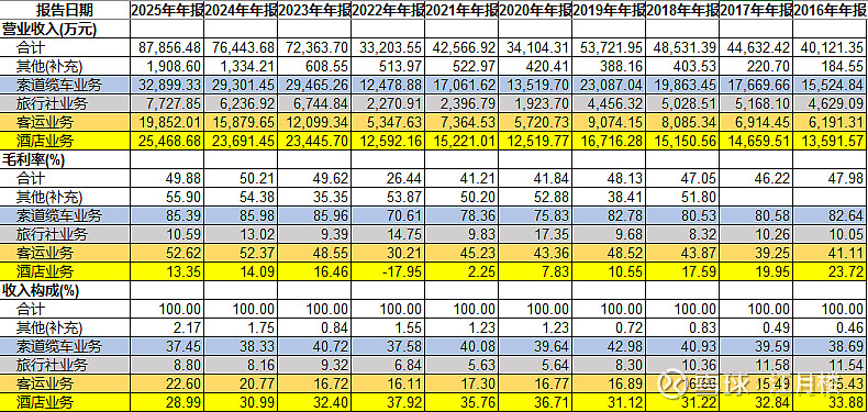 旅行社业务和酒店业务属于有益的补充,这块的毛利率相对不高,可能与门票的“一对一”挂钩也没那么强,但相对而言,资产是独立清晰的,收费是可以明确计量,也就装入上市公司的资产包中,好在其需要分摊的三项费用不高,正常年景下也不会出现亏损。