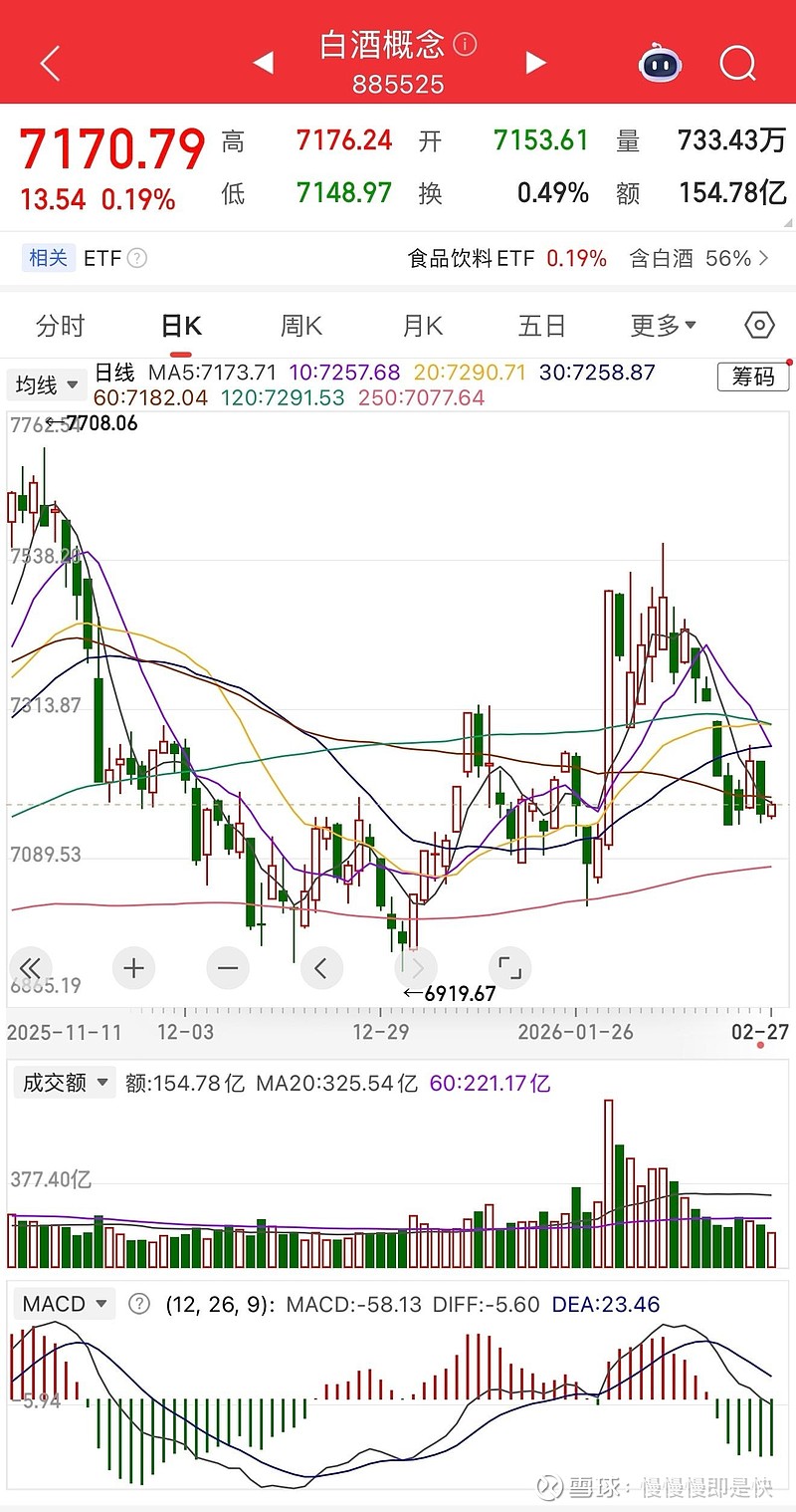 1. 均线系统(空头排列) :截至最新交易日,板块指数收于7170.79点。短期均线(MA5:7173.71)已下穿长期均线(MA10:7257.68、MA20:7290.71、MA30:7258.87),呈典型的空头排列。指数目前承压于所有主要短期均线之下,且MA60(7182.04) 作为中期生命线也已失守,显示中期趋势偏弱。