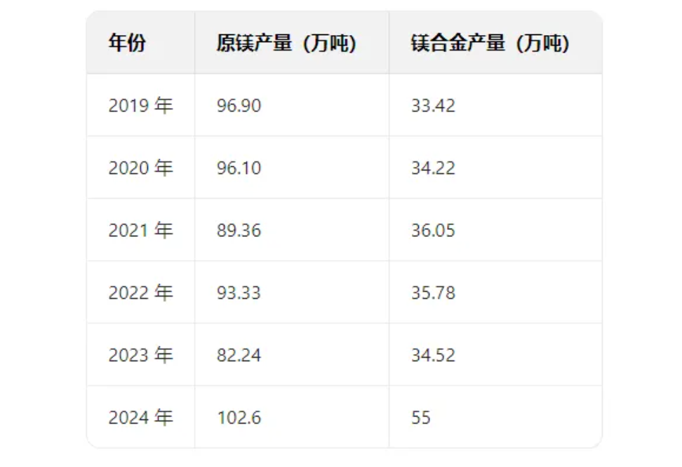 2024年镁供给因复产而大幅增长,供需失衡下镁价进入下降趋势,但对应下游应用场景持续突破中,未来五年需求高速增长,2025年镁价已处于周期最底部,特别是上半年镁价跌破行业成本线下出清部分高亏损产能。