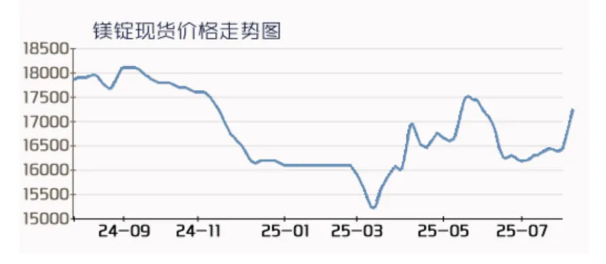 据市场资讯统计,当前镁锭报价成本线大约在17000元以上。2025年上半年最低1.5万多在行情彻底击穿17,000–17,500元/吨的行业成本线,镁价跌破1.6万元/吨(现金成本线),部分高成本区域(如山西、宁夏)吨亏损扩大至800–1,000元以上,仅有宝武镁业可以做到吨成本1.5万这一行业最低水平。