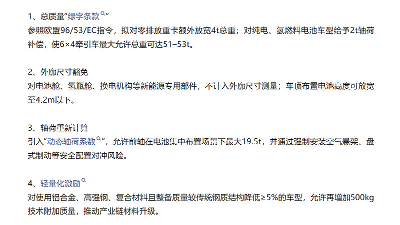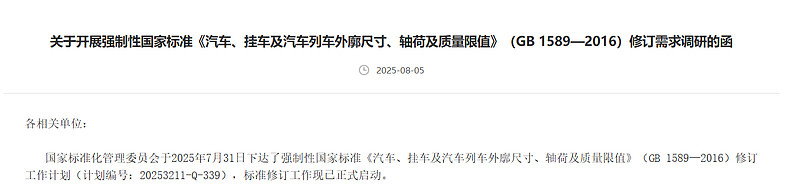 而为什么这个时候提这个存量业务呢,是因为在新能源重卡渗透率达一定比例下,市场需求结构变化下相关行业标准也开启修订,首次提出“新能源技术附加条款”:GB1589《汽车、挂车及汽车列车外廓尺寸、轴荷及质量限值》在2025年8月这项强制性标准启动,项目周期16个月,也就是2026年将公布具体新标准,影响行业的大变化来了(上次发布可是2016年)
