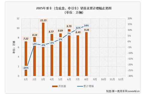 2025年1-8月重卡市场累计销售71.57万辆,在近五年里排第二,同比增+14%,收获同比“5连增”,7月份和8月份同比增速均超过40%,背后是以旧换新补贴下的置换需求与新能源重卡需求双爆发带动(8月我国重卡销售8.7万辆,环比增长2%,而新增新能源重卡1.58万辆,同比大涨近1.7倍,渗透率已经提升近20%),这意味着2025年重卡销量重回100万辆(2024年90万辆)。