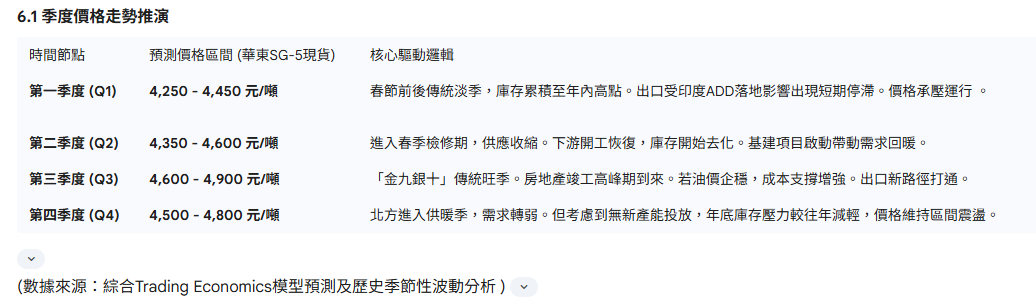下游加工企業: 2026年上半年(尤其是Q1末)可能是原材料採購的最佳窗口期。利用庫存高企時的價格低點鎖定長約,規避下半年可能出現的供應偏緊風險。