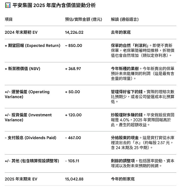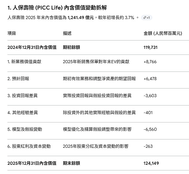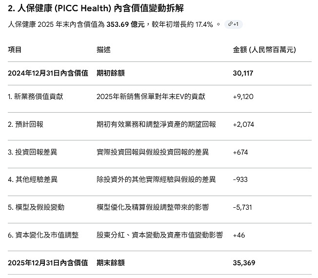 若您需要更深入的細分數據(如新業務價值率或風險貼現率假設的變動影響),我可以為您做進一步拆解。