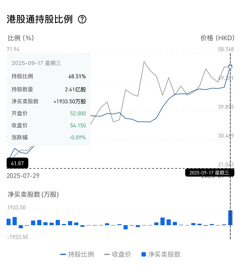 净买入1933.5万股,当天大宗卖出来的部分全被内资接了。目前内资持仓2.41亿股,港股占比68.51%。mark一下。