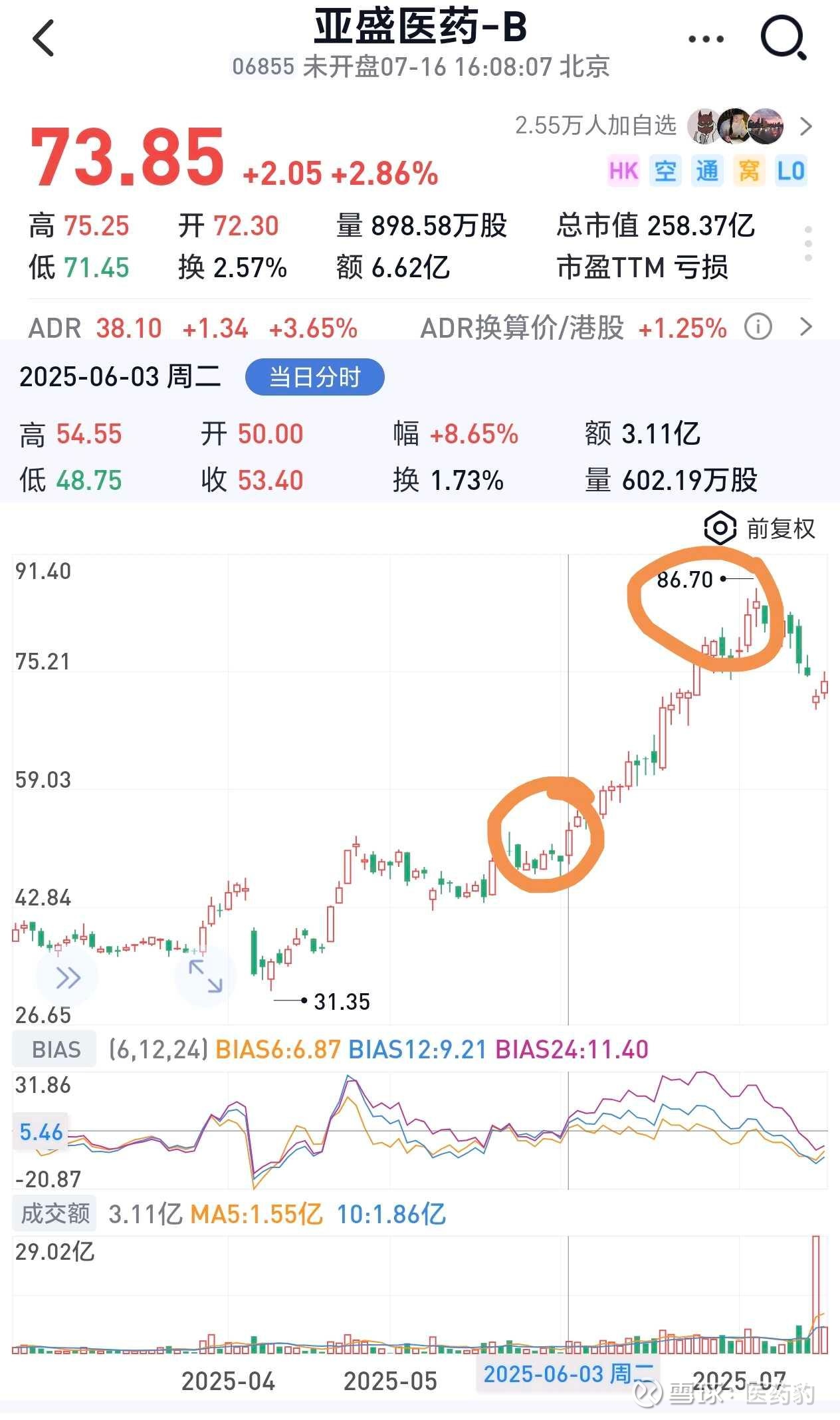 亚盛医药为代表,6月初突破,涨到7月初见顶