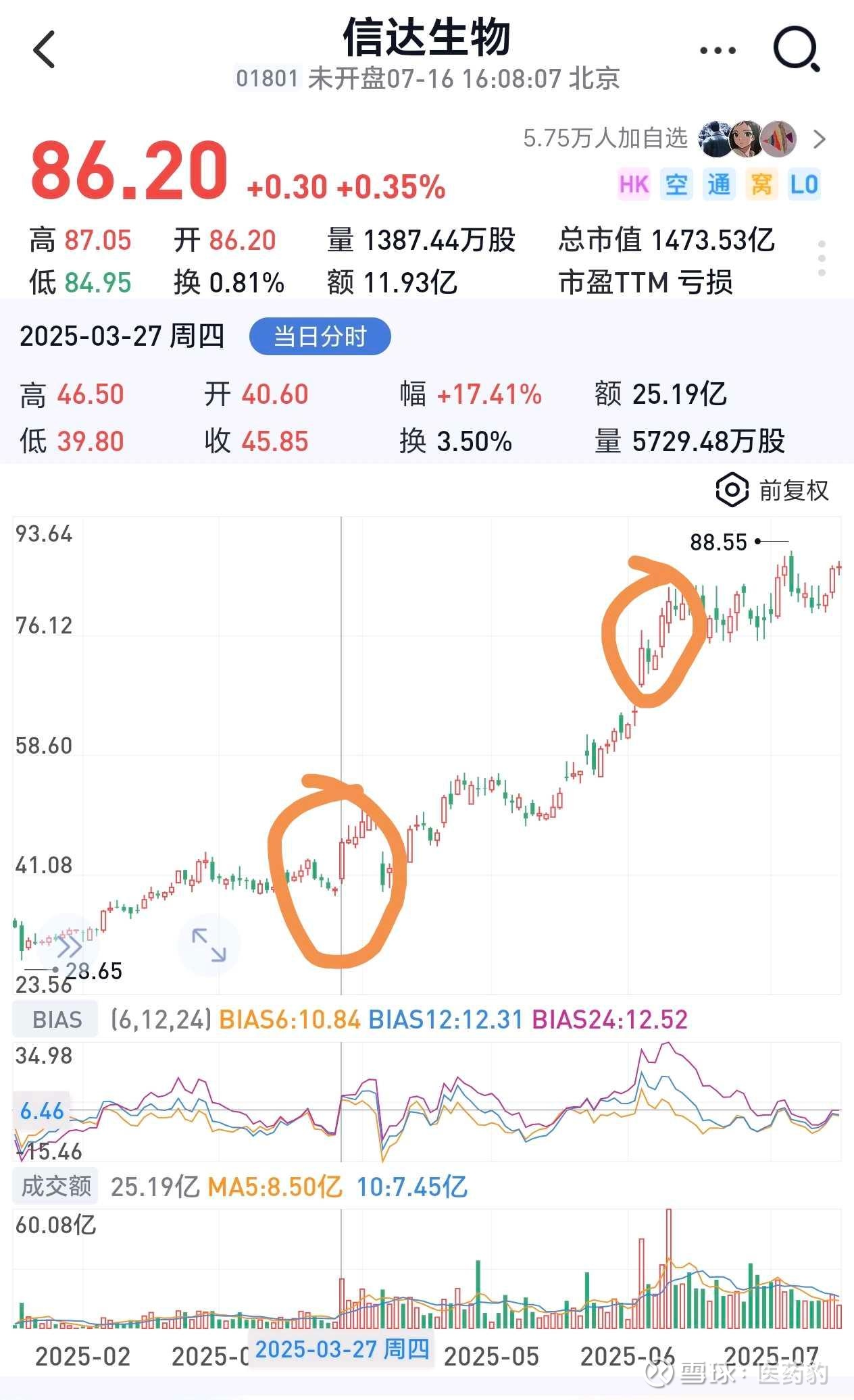 信达生物为代表,今年3月底启动,涨到6月初见顶,目前横盘