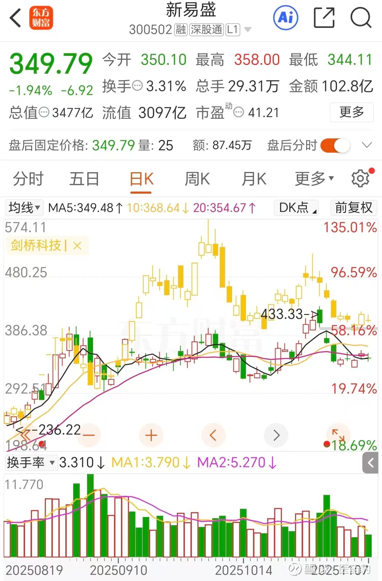 (1)从6月初到8月中旬,新易盛涨了150%,华工科技涨了9%,剑桥科技涨了30%。8月中旬到10月初,新易盛涨了50%,华工科技涨了100%,剑桥科技涨了184%。
