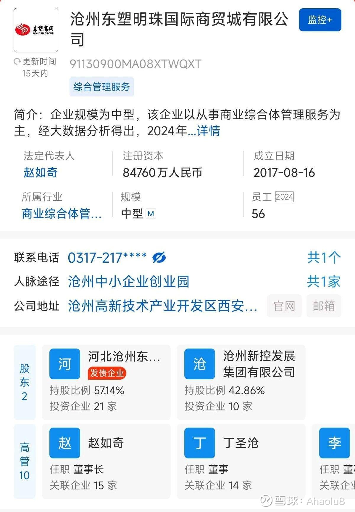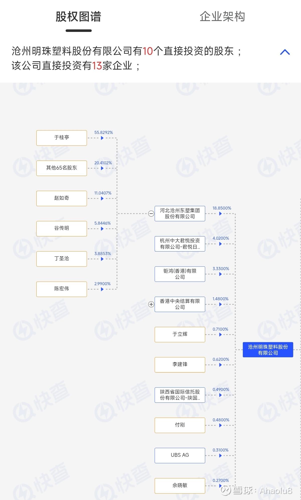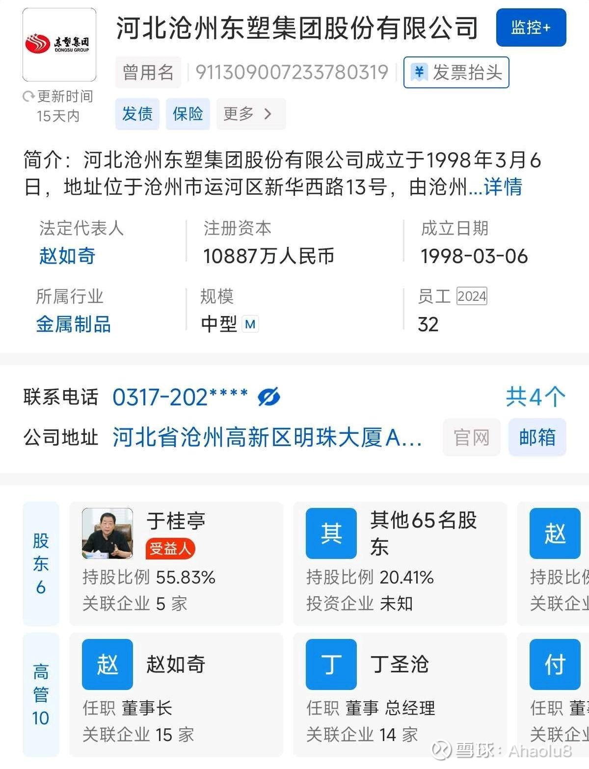 首先聊聊沧州明珠实控人于桂亭的商业版图。于桂亭名下直接控制的最大公司是沧州东塑集团,持有55%的股份,主业是啥?其实是房地产,而今年76岁的于桂亭最大的目标还是想当个包租公,坐地收租。