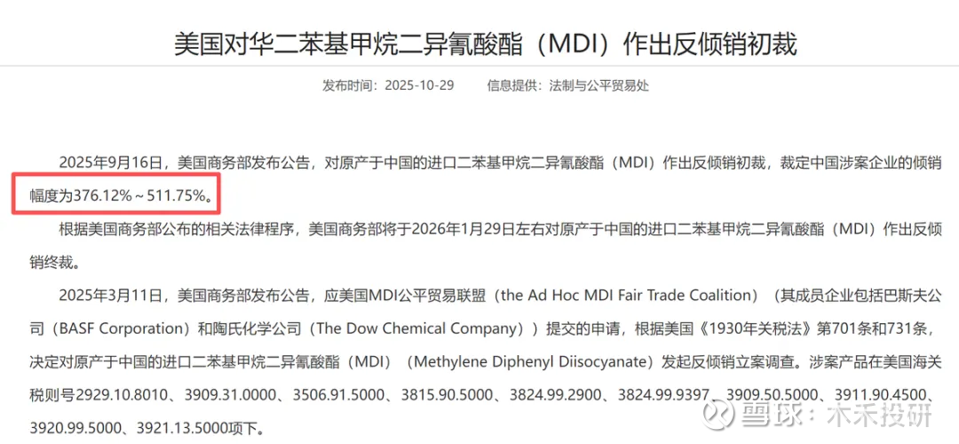 假设裁定生效,累计关税那就是基础6.5%+25%的301条款+2025年新增的10%,那中国的MDI在美国市场就没竞争力了。