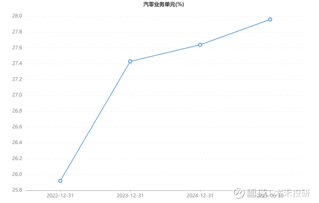 很多人看到三花的汽车业务表现,会觉得越来越差,因为增速越来越慢,到2025年几乎没有增速,去年上半年汽车零件业务营收58.7亿,而2024年上半年是54亿。