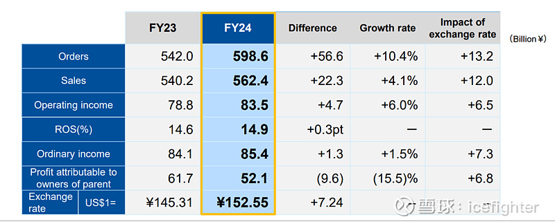 看一下化工流程工业自动化巨头日本横河的财报。他的财报季截止今年3月份,可以看到,去年包括今年Q1,他是增长的。总营收280亿人民币。中控技术去年增速也才6%。