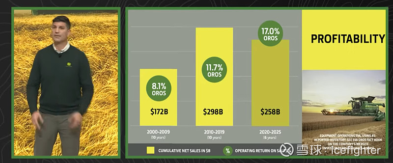 看看农机巨头约翰迪尔。Operating Return On Sales一直在稳定的增长,未来到2030年,会到20%。