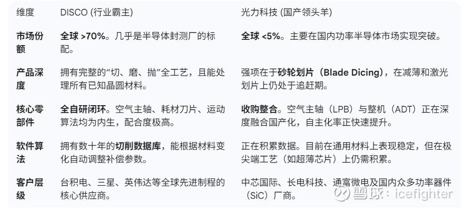 回复@icefighter: 要客观对比光力科技与DISCO,我们必须跳出单纯的“机器长得像”这一层面,进入到**“材料、算法、生态、规模”**这四个深水区。
