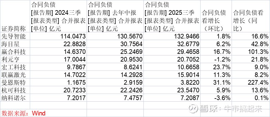 合同负债的同比与环比变化,看公司的增长。从新增订单——合同负债——营业收入——应收账款——经营现金流的业务流上,合同负债是设备股的先行指标。