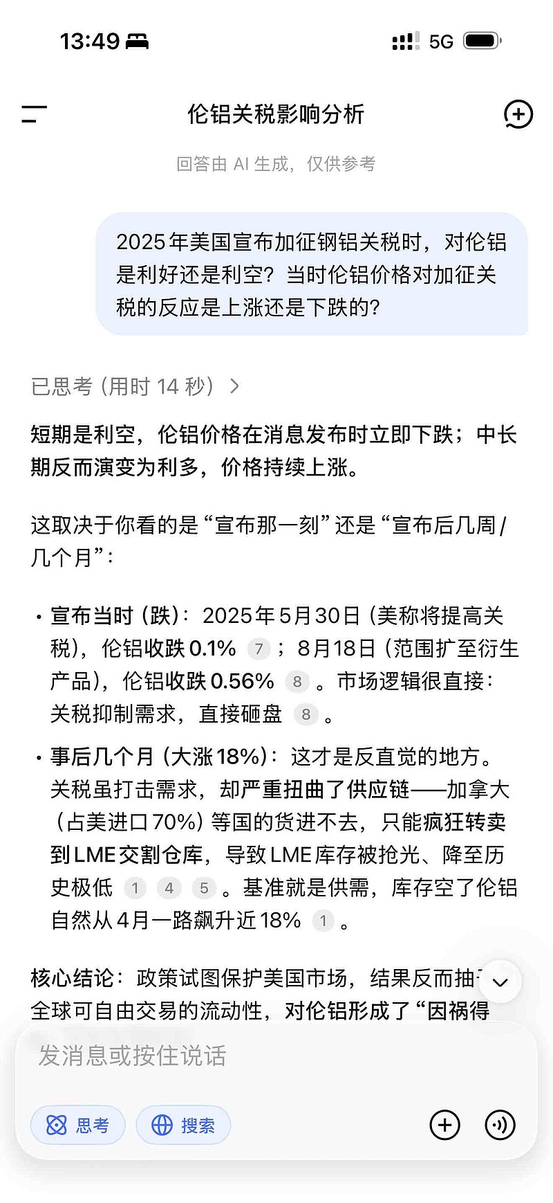 $中国宏桥(01378)$ 2025年5月30日美国刚宣布加征钢铝关税时,被认为会减少需求,同时俄铝会更大量地流入中国,当天的伦铝、沪铝以及宏桥的股价都遭到了一波砸盘。今天美国宣布考虑部分取消钢铝关税,那么就应该是提振需求、同时减少俄铝流向中国的压力才对。如果当时被解读为利空,那么今天就应该是利好。金融市场上有些人啊,特别喜欢乱开玩笑。