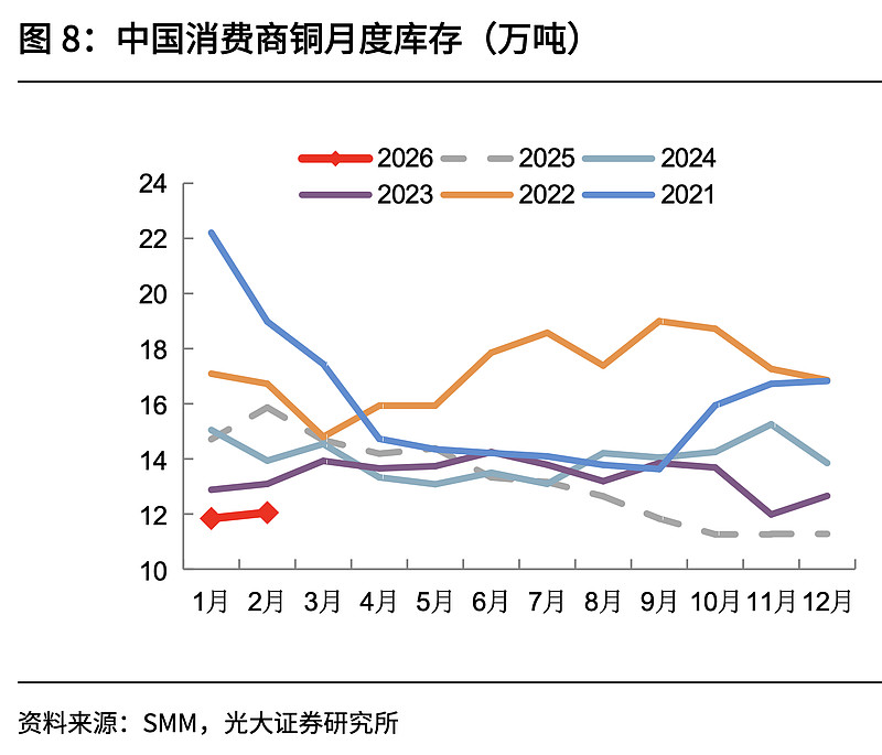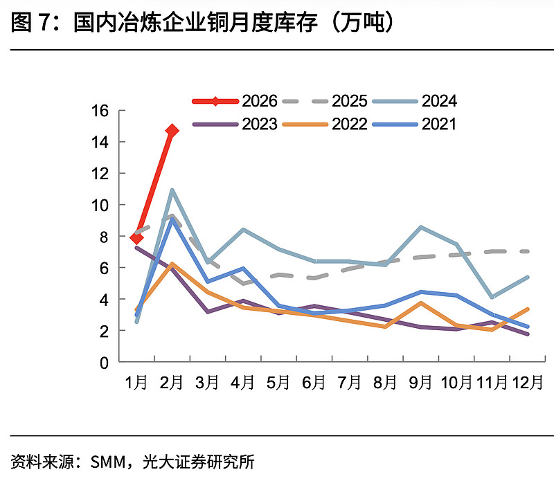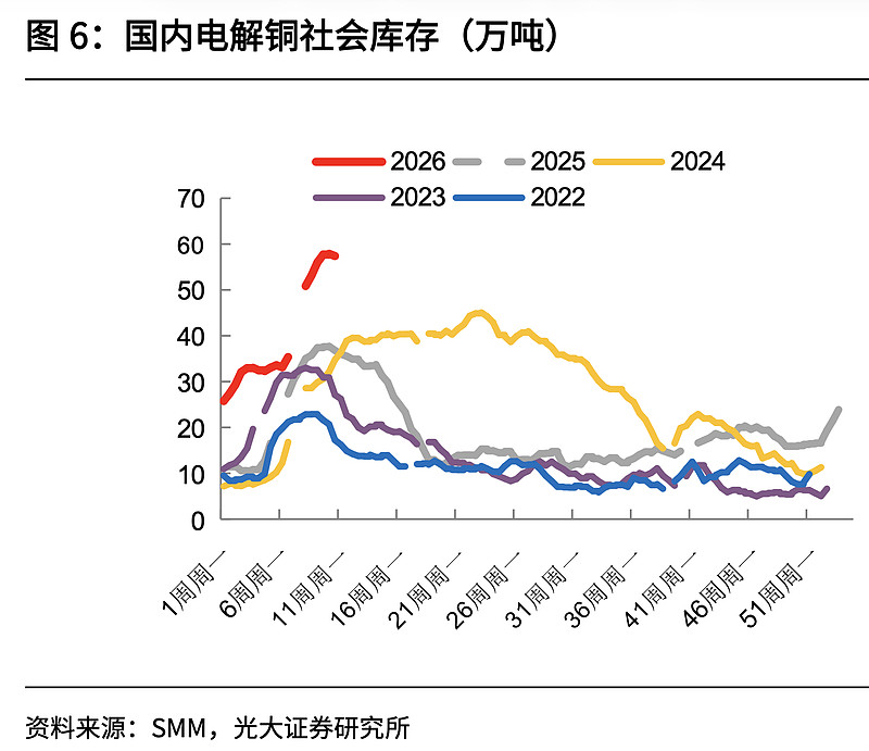 总之,我看到铝业股的投资者网友们如此小心谨慎,我还是挺欣慰的,说明我们这里的氛围比隔壁金银铜要理性得多。下面我顺带贴几张今年以来电解铜的库存数据,让大家见识一下什么才叫真正的累库。电解铜的交易所库存和冶炼商库存今年以来明显超越一切季节性,与此同时下游的消费商拒绝补库,我认为这才叫高价格对下游的需求破坏。但是请大家看一看人家炒铜的人慌了没有呀?人家根本不慌。我至今从来没见过哪个炒铜的人像诸位炒铝业股的网友这样,小心翼翼地观察计算铝锭库存是否超季节性累库的,哈哈哈!
