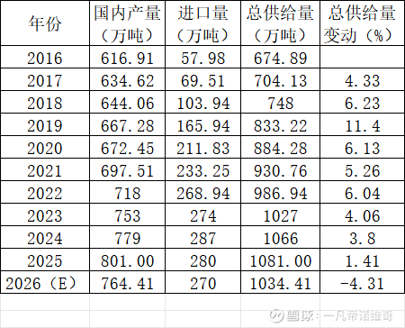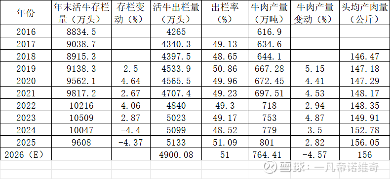 随着存栏量的明显下降和2025年四季度的超卖,2026年活牛供给压力减弱,预计2026年牛肉供应量同比下降4.31%,对活牛价格形成一定的支撑。预计2026年全年牛肉均价较2025年上涨20-30%,其中春节后行情受猪肉价格低迷影响价格有所下滑,同时带动活牛存栏进一步下降,下半年行情震荡上行。