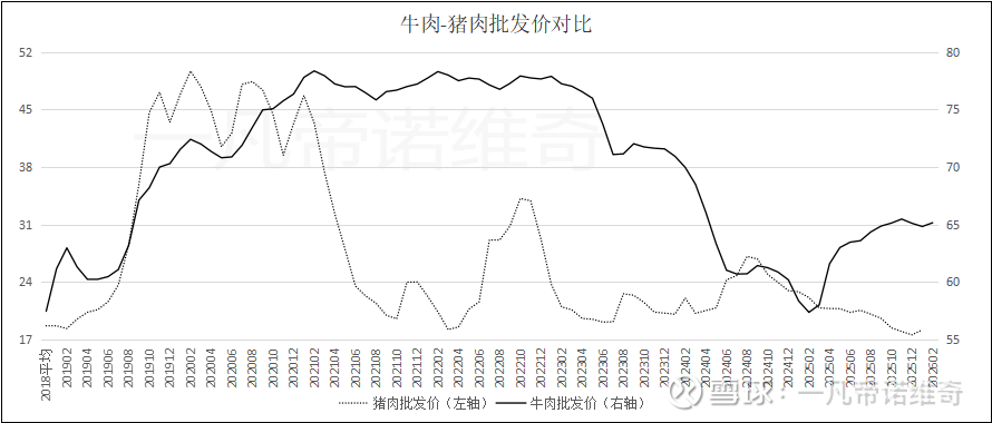 牛肉价格在2025年春节后创出近七年的新低,快速反弹至65元/公斤后开始震荡。