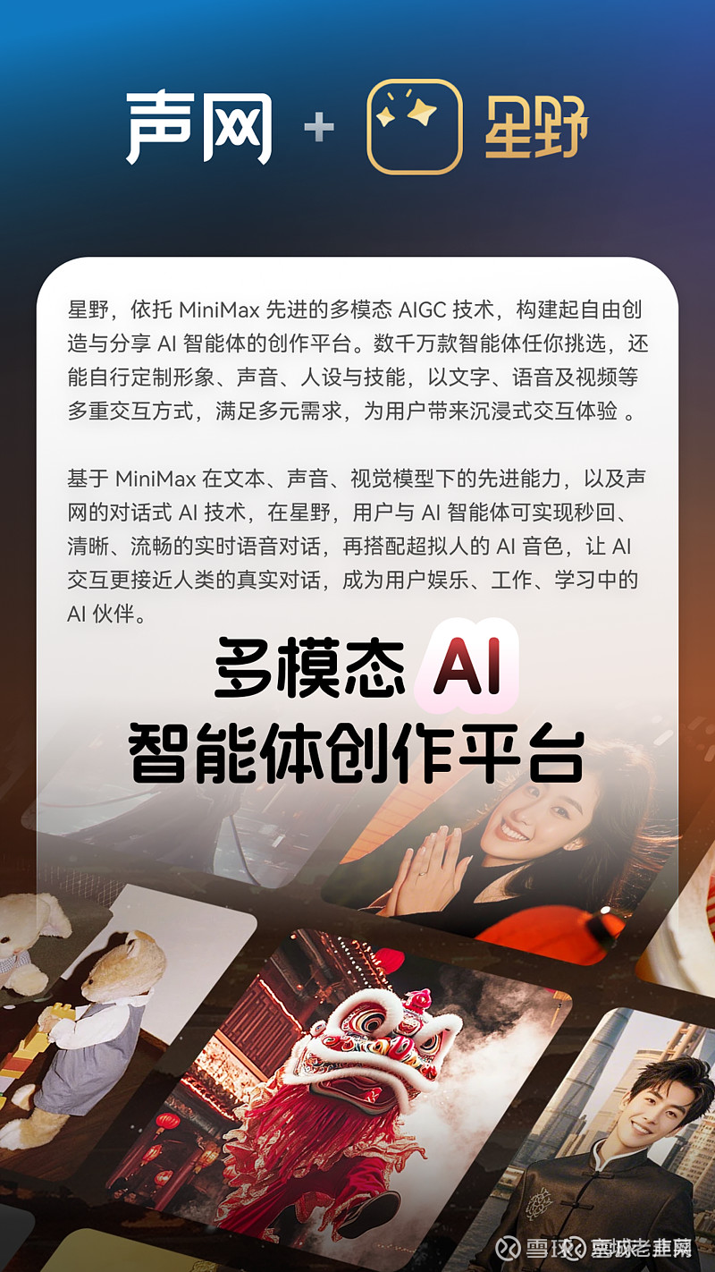 基于 MiniMax 在文本、声音、视觉模型下的先进能力,以及声网的对话式 AI 技术,在星野,用户与 AI 智能体可实现秒回、清晰、流畅的实时语音对话,再搭配超拟人的 AI 音色,让 AI 交互更接近人类的真实对话,成为用户娱乐、工作、学习中的 AI 伙伴。