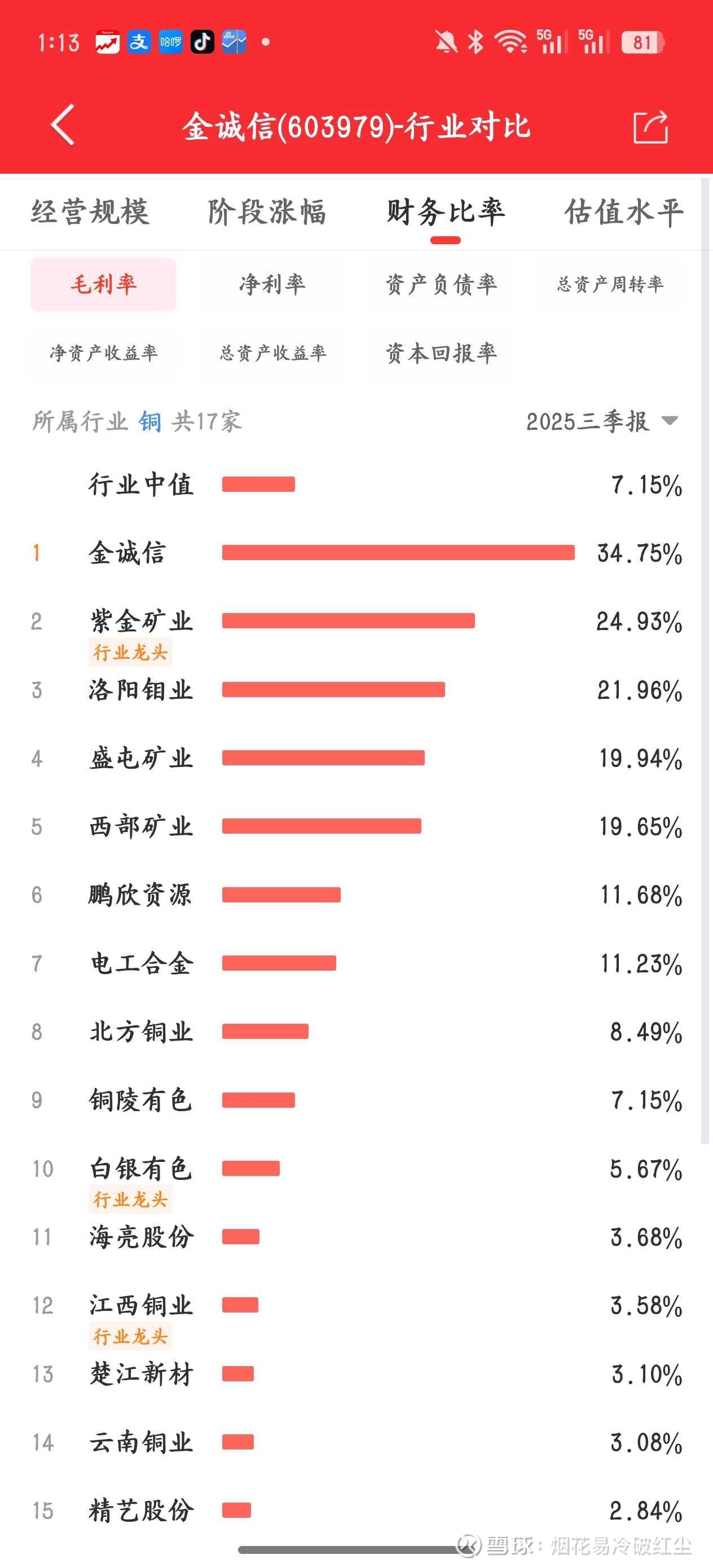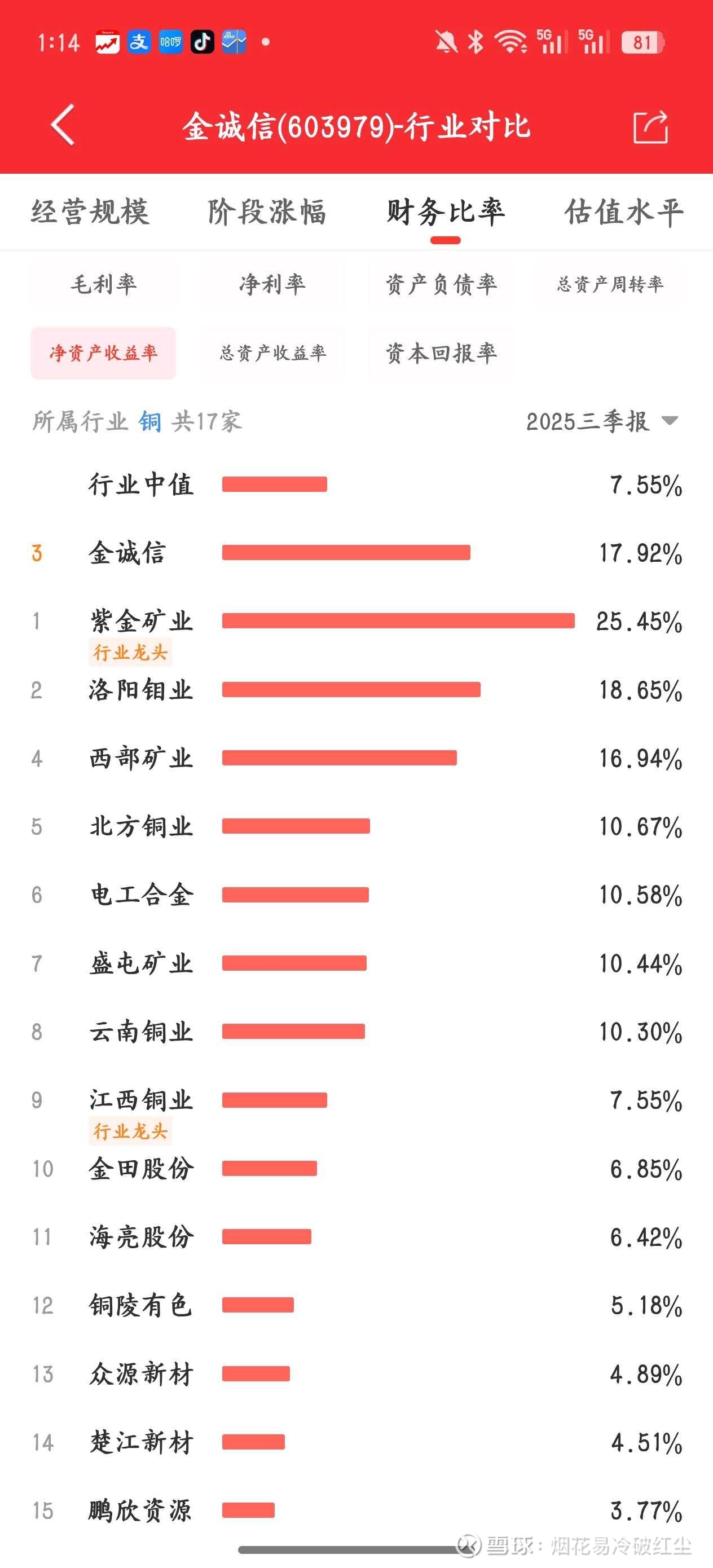 从基本面上来看,无论是毛利率,净资产收益率,净利润增速还是盈利质量,都是在铜板块中遥遥领先。