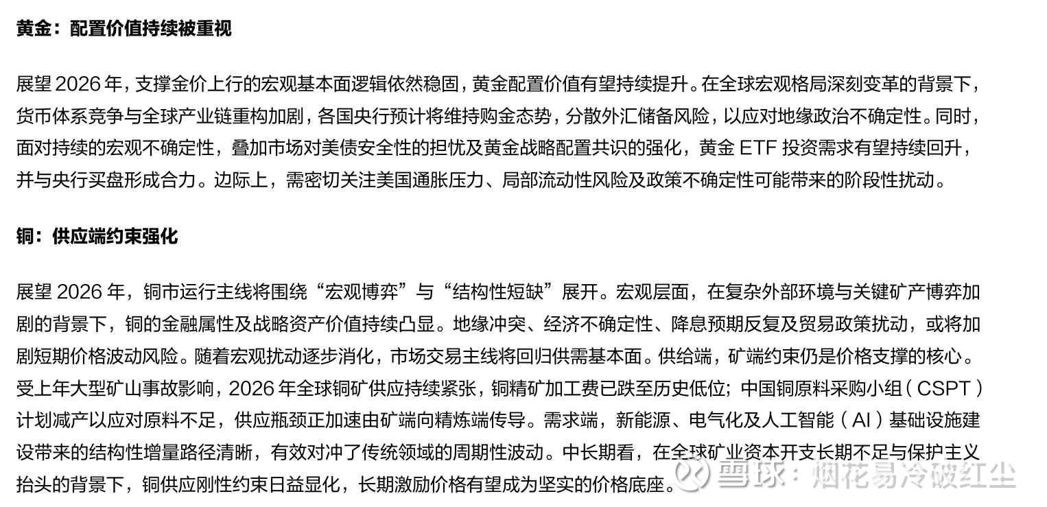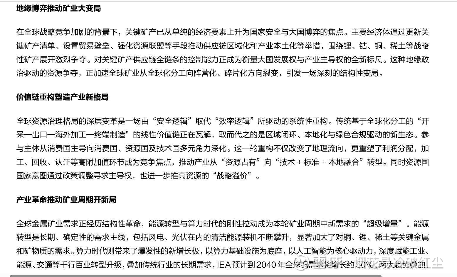 其实其实紫金在年报中对于大宗商品的展望写的很清楚。当下地缘博弈推动了矿业的大变局,且价值链重构由安全逻辑替代了效率的逻辑。这也就是为什么金价持续上涨,频频超出分析师预期的重要原因。此外,那就是新能源转型以及AI算力革命推动了,铜,锂,稀土等关键金属的需求。一些新增的结构性需求是要大于传统周期性的影响。