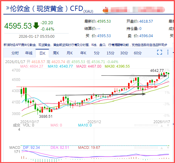 目前伦金在4600附近振荡出中枢结构,马上就会新高,一季度大概率出阶段高点,5000是小意思~5500概率也很大~