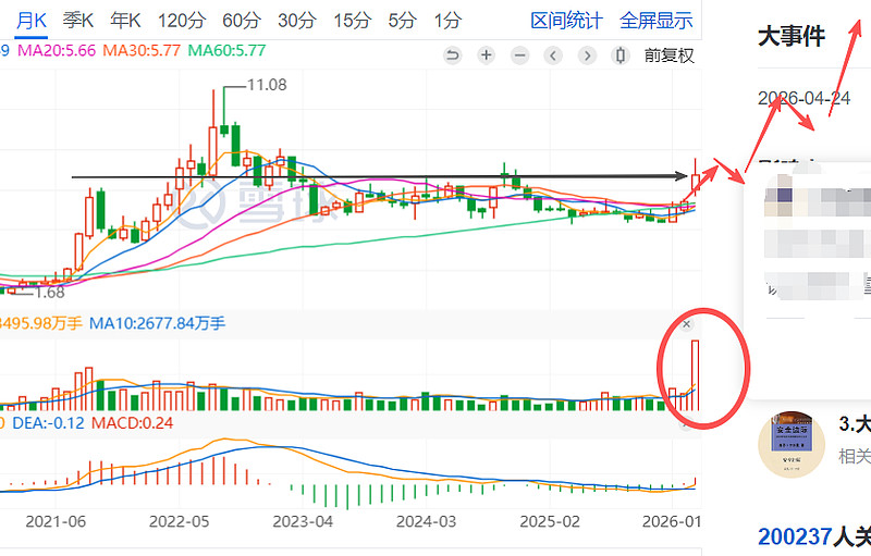 趋势:月线,巨量,趋势扭转,充分换手,长线第一目标10~14元