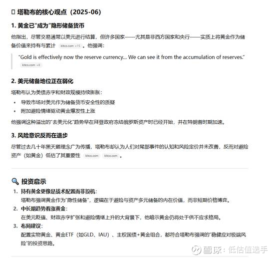 战争会抑制大家的需求,会减少投资,增加黄金储备,所以动荡的年代金油比一般维持高位,和平的年代,大家都在发展经济,石油需求上涨,油价回升,金油比维持低位。很多人认为俄乌战争结束,俄罗斯石油供应增加,短期油价会下降,但是乌克兰要重建,俄罗斯也要重建,和平会带来经济发展,反而会增加石油的需求,油价可能上涨。当然可能还需要一个极端事件来把油价打到一个更低的位置,这样高成本的油井就都退出了,然后油价再慢慢回升,低油价对海油来说并不是一件坏事。黄金的上涨还有另外一个重要的原因就是俄乌战争让全球央行意识到美金储备不靠谱,说把你没收就没收了,所以央行在大量的囤积黄金,贴一张塔勒布的观点: