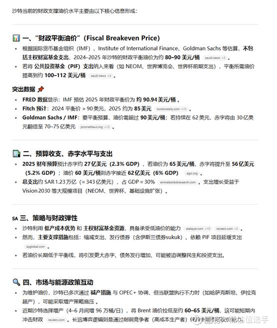 二、沙特的财政盈亏平衡点:低于60美金,沙特的财政赤字会扩大,难以持续。