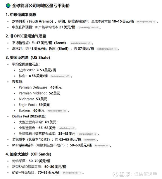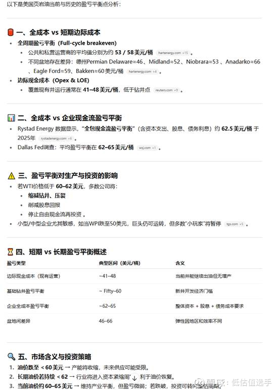 三、美国页岩油的盈亏平衡点:大概就是在60美金左右,