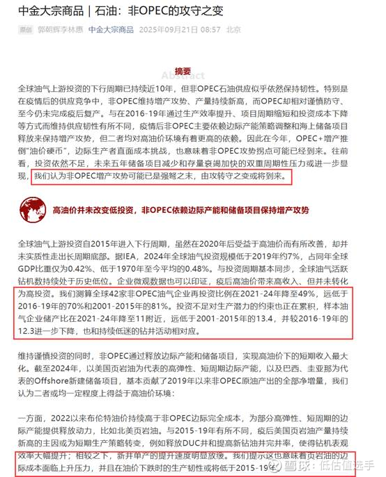 以下是中金20250907对石油价格的分析:2025,2026石油供给偏够剩,油价可能长期在60美金左右。网页链接