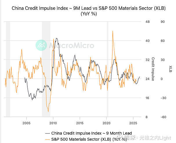$纽蒙特矿业(NEM)$ $基础材料ETF-SPDR(XLB)$ 中国信用脉冲指数的飙升先于 XLB 的同比增长,鉴于中国在全球大宗商品市场中的重要作用,这种信贷脉冲激增到需求激增,需要时间传导才能影响全球供应链和材料价格,从而推高 XLB 的业绩。
