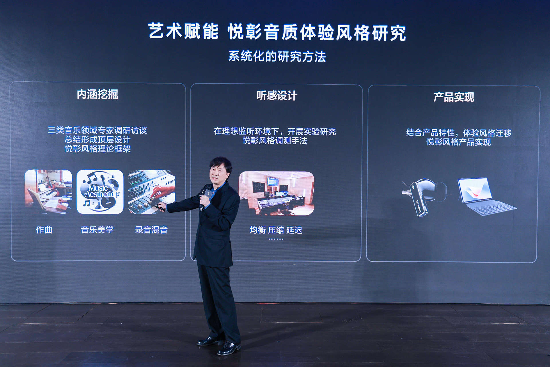 这个音质表现的背后,其实不只是硬件的功劳,华为与中央音乐学院联合打造了三款专属音效,每一种音效都借助了中央音乐学院的音乐AI大模型设计,可以更好的兼容不同风格的乐曲,并恰到好处的进行听感优化。
