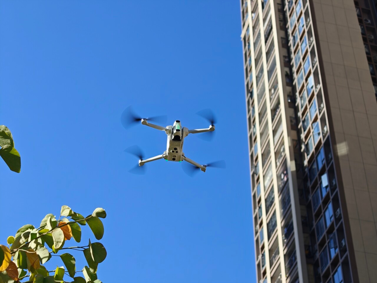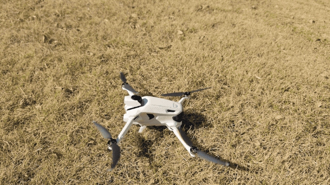 起飞时,起落架会自动向内收起,减少飞行阻力;降落时则自动向外展开,将机身底部的传感器和镜头抬高 2cm,有效避免了粗糙地面、石子、草地等复杂材质对核心部件的划伤。实测中,在布满碎石的郊外地面降落,起落架稳稳支撑机身,底部传感器没有磨损,这一设计对户外拍摄用户来说尤为实用。
