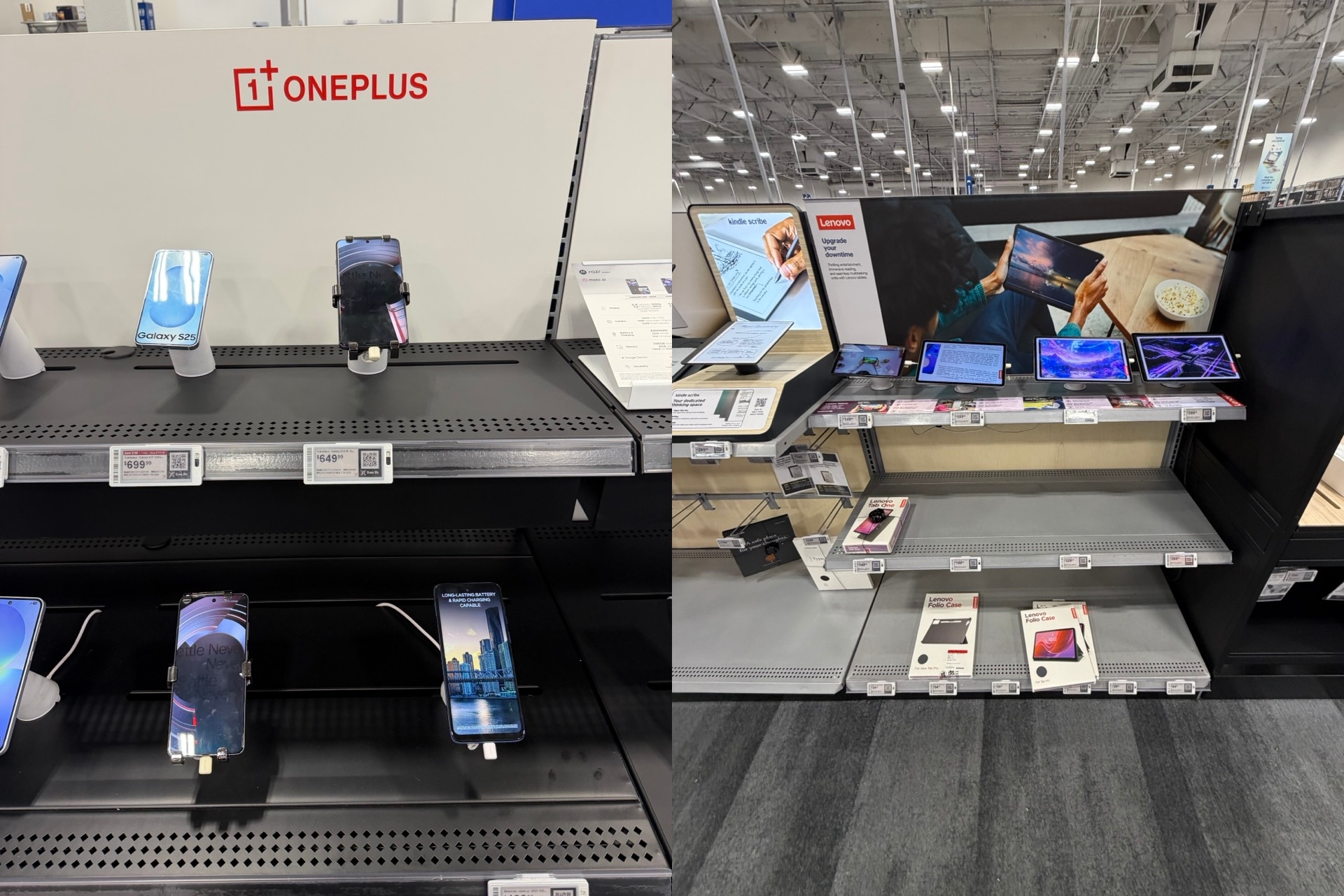 手机专区,小雷看到了一加和摩托罗拉(联想旗下)品牌。一加手机的陈列位置,和三星紧邻。也许国产手机品牌,只要可以进入美国市场,同时注重渠道扩张,那么就可以得到相对「无差别」的销售待遇,只要你的产品素质过硬,何况国产手机整体竞争力早就今非昔比。当然,作为较早进入美国市场、且深耕美国市场的品牌,一加能取得现在的位置,坚持同等重要。而在平板专区,联想更是承包了一个专属陈列位置。