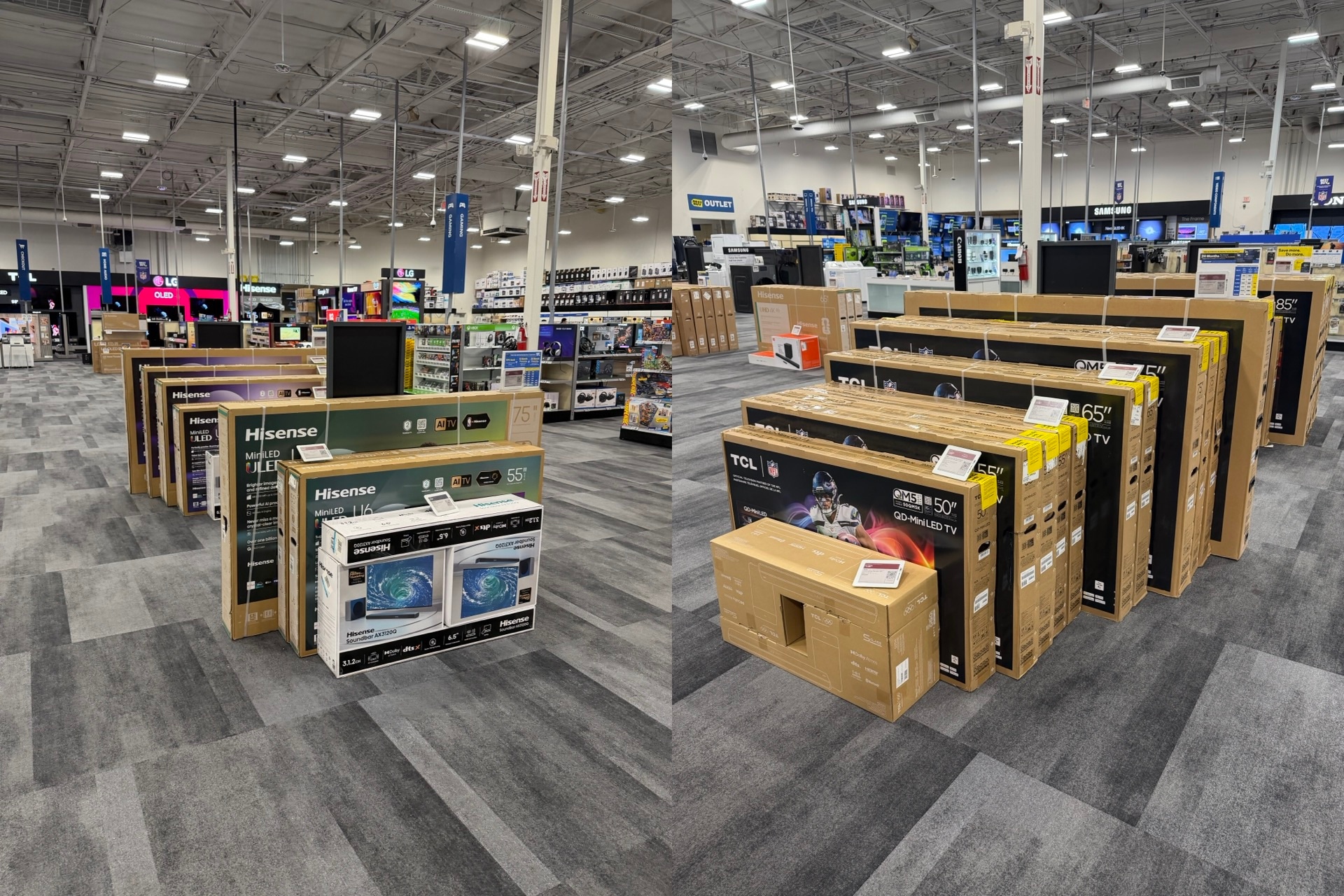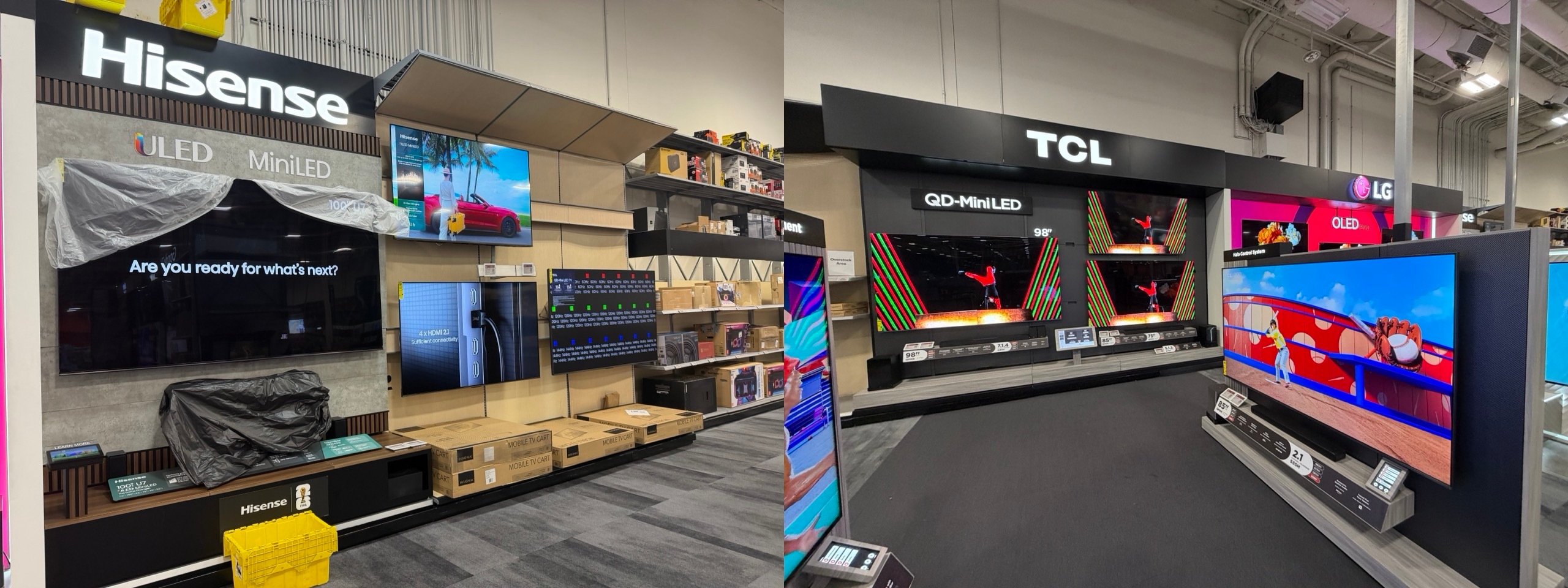 结果,很快就看到了中国品牌在这家百思买商场中的两个最大门面:海信和 TCL。