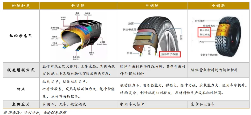 全称“半钢丝子午线轮胎”,是乘用车领域的主流轮胎,占市场绝大多数份额。其结构特点是胎体使用纤维材料,带束层使用钢丝,故称“半钢”。