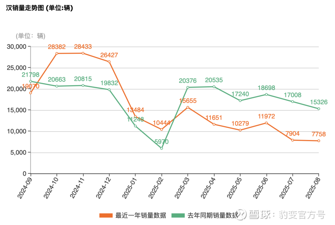 更严重的是,降价带来的品牌形象下沉,正在侵蚀比亚迪的品牌价值。海豹、汉一度是比亚迪冲击高端市场的主力车型,售价站上20万元区间,但如今已经成为网约车热门车型,让不少潜在用户望而却步。8月,汉全系销量7758辆,同比下降49.38%,而巅峰期,汉月销量站上过3万+。