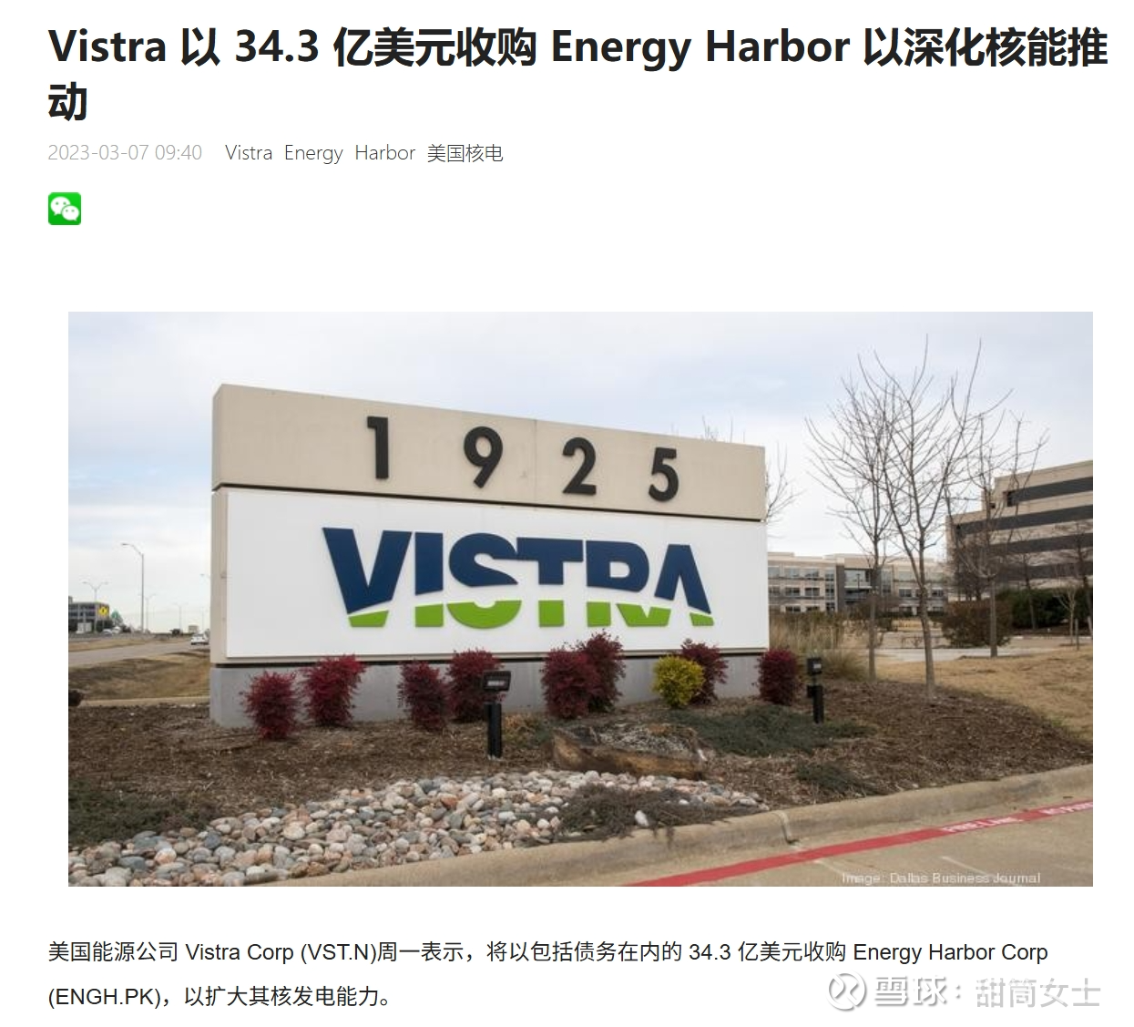 23年初,VST 收购 Energy Harbor 的核能资产时,正值核能被视为“放射性废料”的低谷期。
