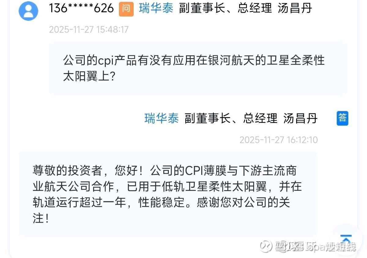 回复@cpa炒短线: 这图显得沃格更厉害了,瑞华泰作为老牌pi龙头,早早就开展相关合作、运营,测试,结果让沃格给反超了,产品抢先运用在最先进的卷式柔性太阳翼,后续还有订单追加,而瑞华泰在订单方面不做正面回应,是不是意味着沃格的CPI膜材在性能与成本方面有着极大的领先优势//@cpa炒短线:回复@修心健身: 查看图片