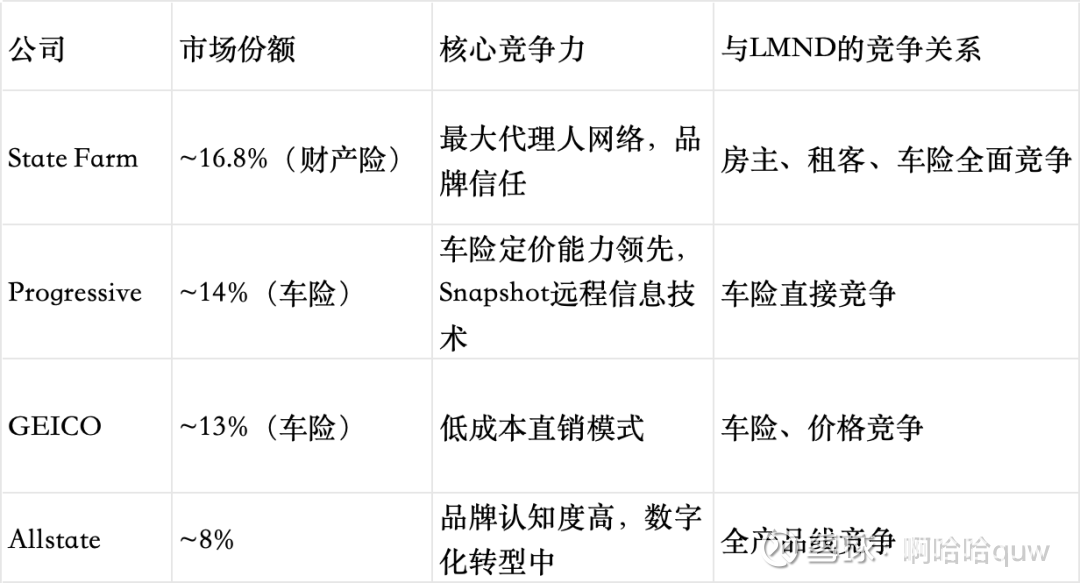 传统保险公司正在加速数字化。Progressive的Snapshot远程信息平台持续迭代,State Farm的数字渠道投入不断增加,GEICO的直销模式本身就以效率著称。这些公司拥有Lemonade短期内难以企及的数据积累和品牌信任。在insurtech领域,Root等对手在特定市场可能更具优势。保险产品的转换成本较低,客户可能因价格因素随时切换。