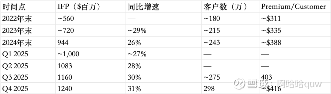 IFP增速连续9个季度加速——从2023年中的约24%逐季提升至2025年Q4的31%。这一趋势在保险行业较为罕见,因为规模越大、增速通常越慢。驱动力来自两个方面:
