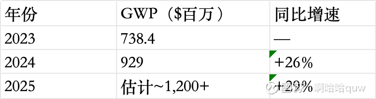 GWP增速与IFP增速基本一致(约26-31%),验证了IFP是业务增长的可靠代理指标。而收入增速(40%)显著高于GWP增速(约29%),差额就是再保险配额调整带来的”留存效应”。