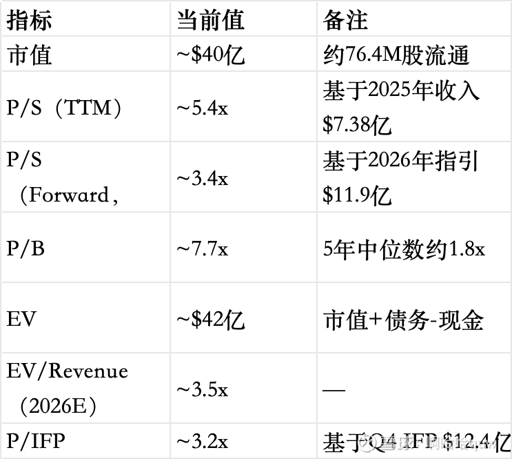 按$40亿市值和$11.9亿收入指引,Forward P/S约3.4x。