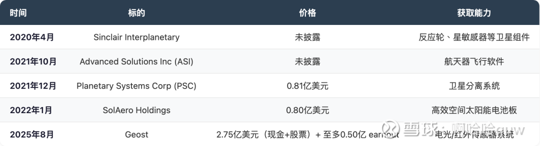 太空系统产品线通过六次收购完成垂直整合: