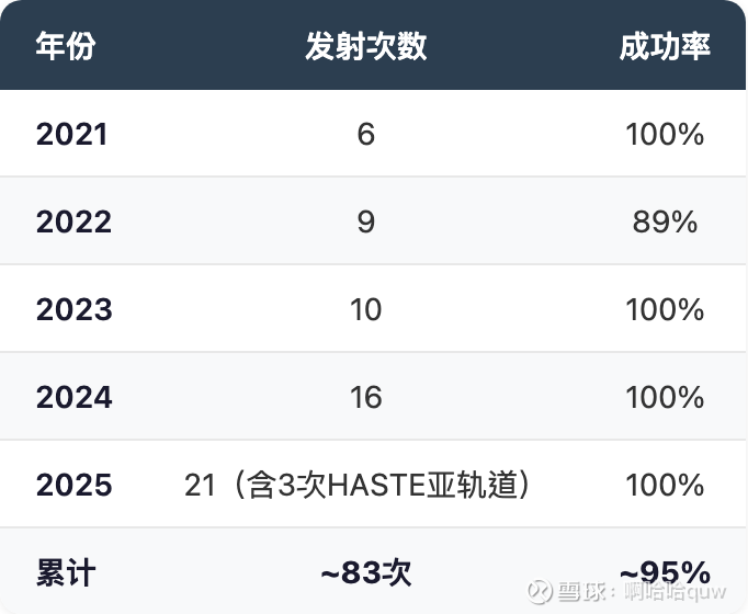 发射频次和可靠性是最核心的壁垒。火箭行业的准入门槛极高,但真正的壁垒不在于"能不能造出火箭",而在于"能不能持续、可靠地发射"。Electron 用了8年时间、83次发射才建立起当前的可靠性声誉——2023年以来连续三年100%成功率。这种记录需要几十次成功发射来积累,每次发射之间还需要排故、改进、再验证,不是一两年能追上的。