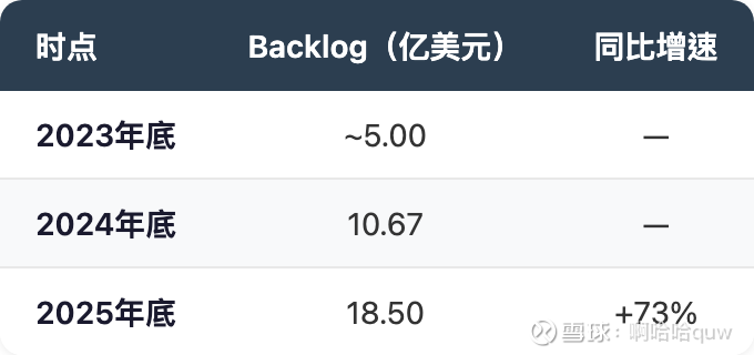 Backlog 的增长趋势清晰:
