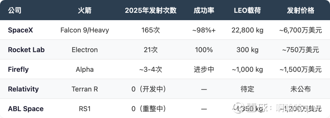 (数据来源:各公司官方公告、SpaceNews、NASASpaceFlight.com)